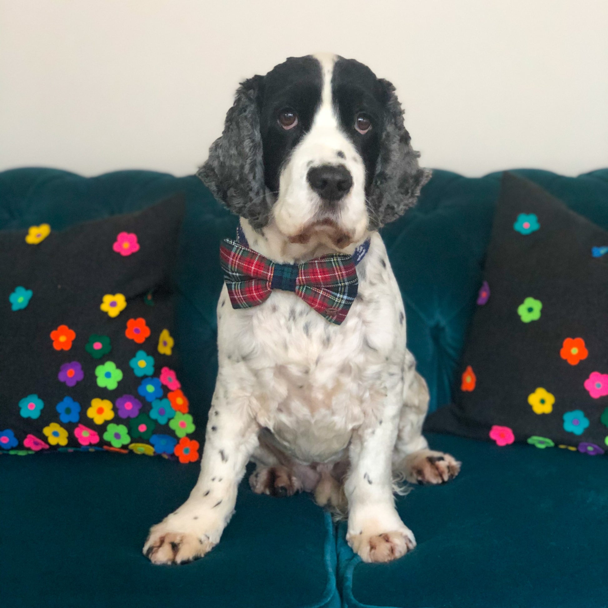 The best way to measure your dog for their perfectly fitting neckerchief is to take a piece of string, pop it around their neck and mark where the ends meet, then match it with the sizes below. All of our neckerchiefs are self tie, so if you have a dog with sort legs you can style it by rolling it up to make the ends longer and then tie it in the double knot.